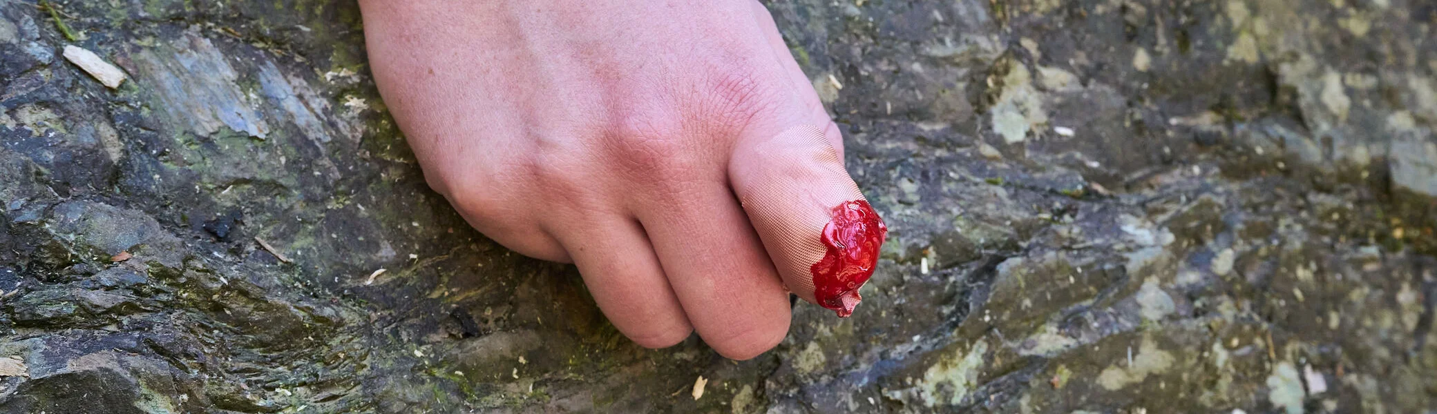 Ausgestattet mit reichlich Material inklusive Kunstblut, Schminke und Spielzeughubschrauber kämpfen wir uns durch die häufigsten Szenarien: Kreislaufprobleme, Schlaganfall und Herzinfarkt sind ebenso dabei wie Beinbruch und Schnittverletzung. Schnell wird mir klar: Nicht die Art der Unfälle ist in den Bergen das Besondere, sondern das Drumherum. Der Rettungshubschrauber kommt selten unter einer halben Stunde, auf andere Helfer kann man lange warten und wer hat schon einen Defibrillator im Rucksack. Hier ist klassische Ersthilfe gefragt: Opfer (und sich selbst!) sichern, Symptome abklären und dann Hand oder Verband anlegen.