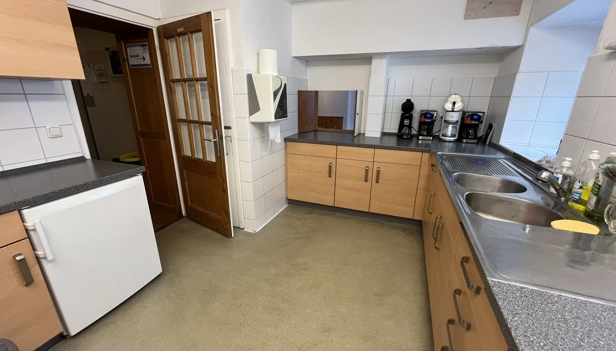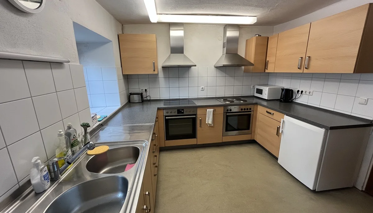 - Die große Küche hat die Funktion einer Kochküche, die kleine Küche hat die Funktion einer Spülküche.